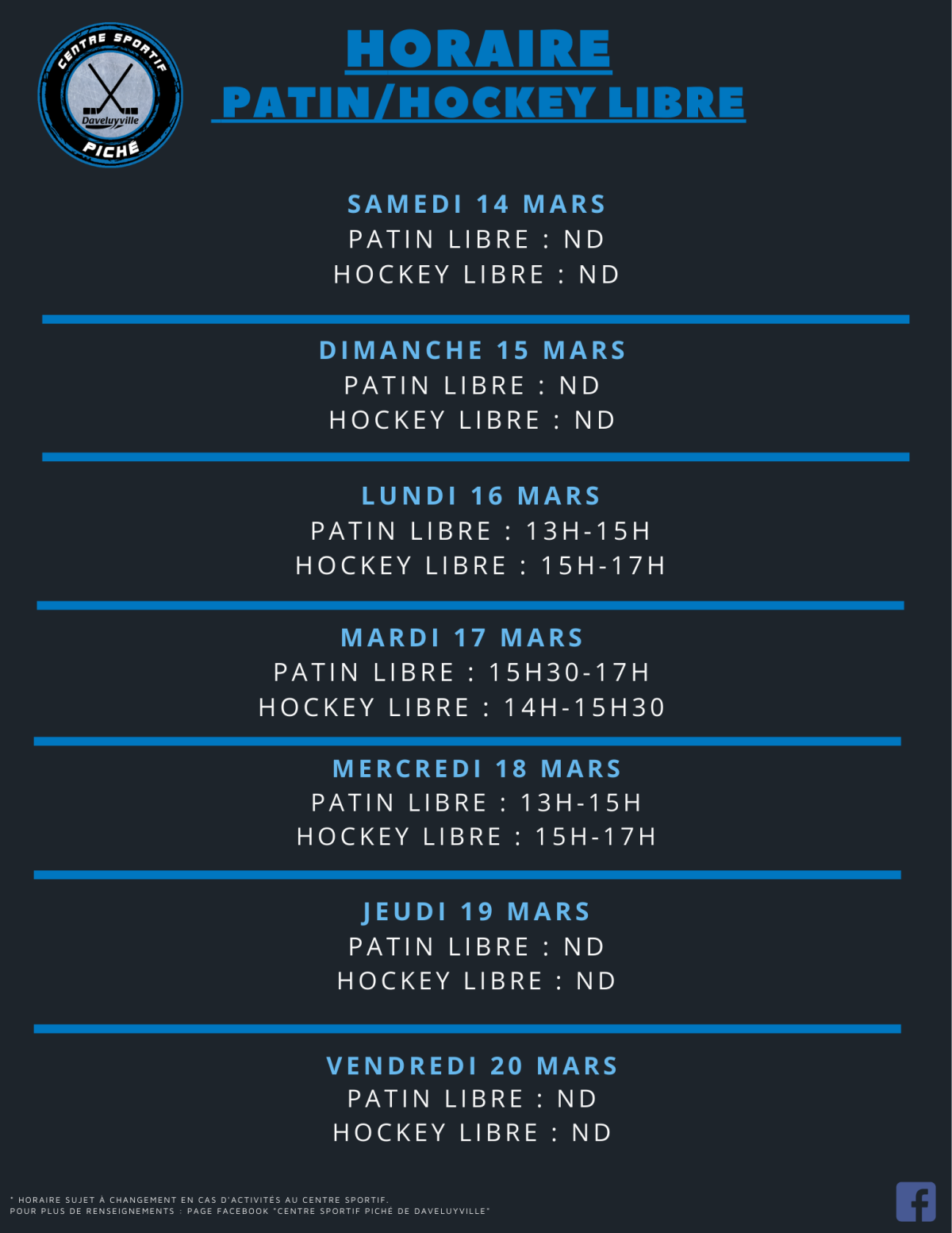 Horaire du patinage et du hockey libre